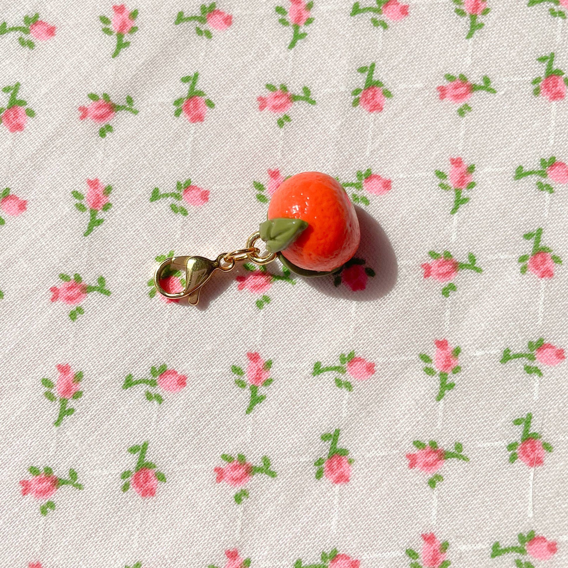 The sweetest little clementine bag charm. Handmade with polymer clay and stainless steel hardware. Clementine measures 0.5” by 0.5”