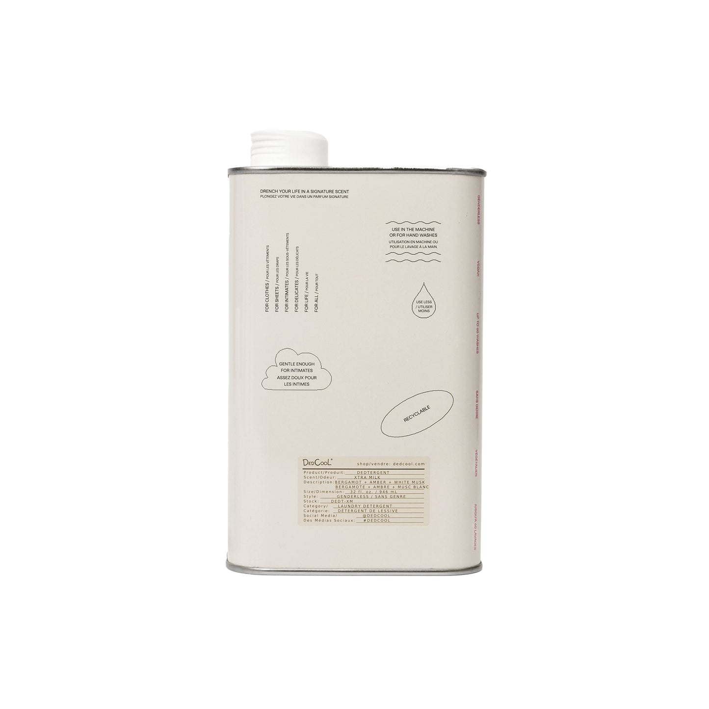 Dedcool is dreamy perfume brand out of Los Angeles, xtra milk detergent is a signature product with a soft flattering scent you’ll want all your clothes and bedding washed in. Gentle enough for intimates. Key notes are bergamot amber and white musk. We swear by this stuff.