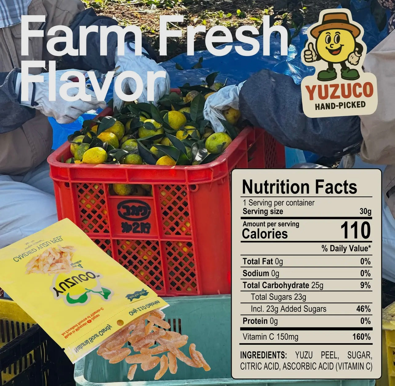 simple, natural candy made with yuzu peel! Cater to your craving without all the guilt. These chewy, sweet and satisfyingly sour strips are a delicious snack on their own, a tasty topping for granola, pie, ice cream and so much more